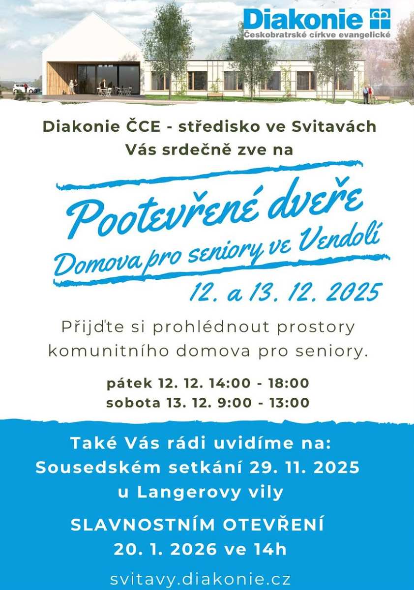 Diakonie ČCE - středisko ve Svitavách Vás srdečně zve na pootevřené dveře domova pro seniory ve Vendolí 12. a 13. 12. 2025.