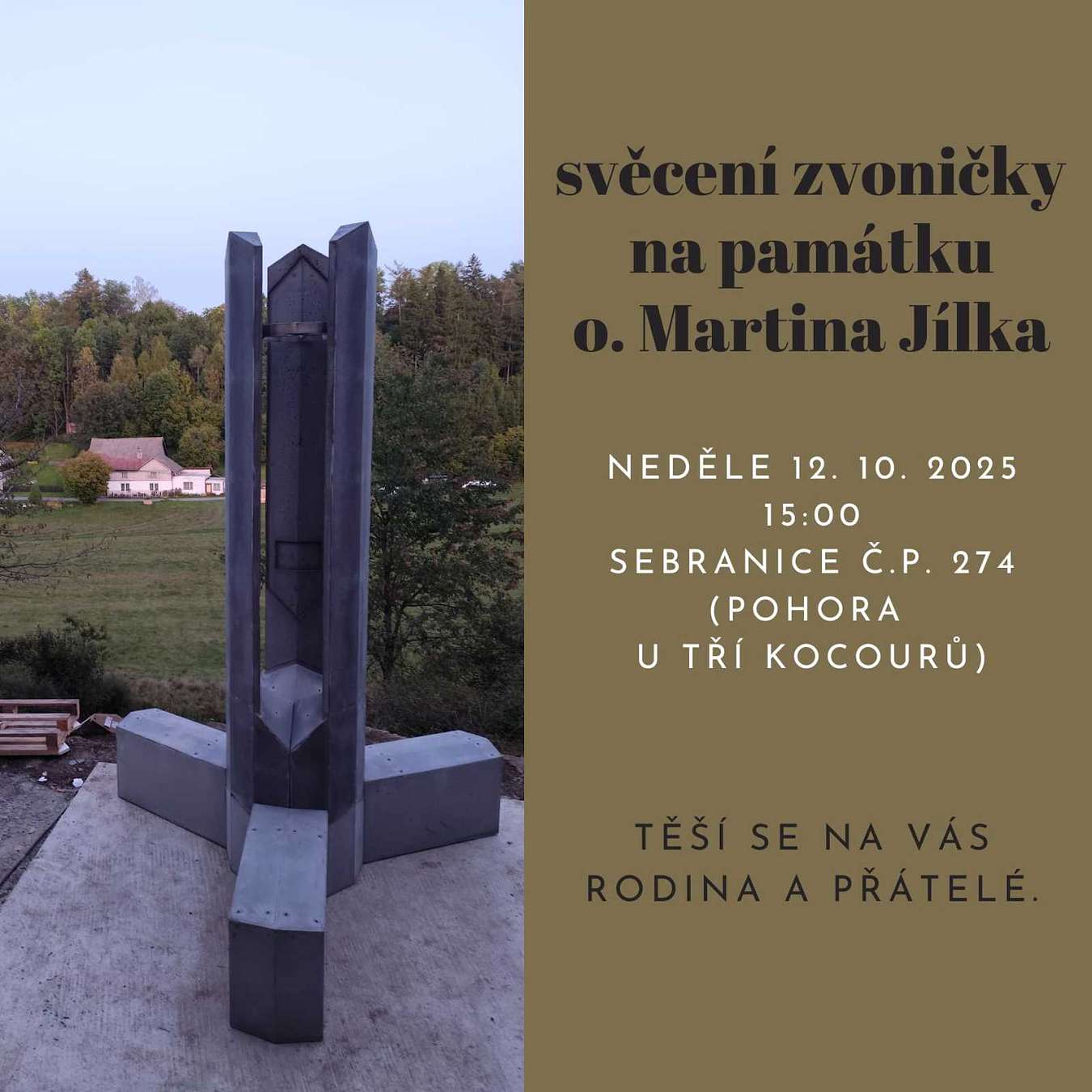 srdečně vás zveme na slavnostní svěcení nové zvoničky, která vznikla jako tiché místo oddechu a vzpomínky na rodáka, otce Martina Jílka, u příležitosti jeho nedožitých 50. narozenin.