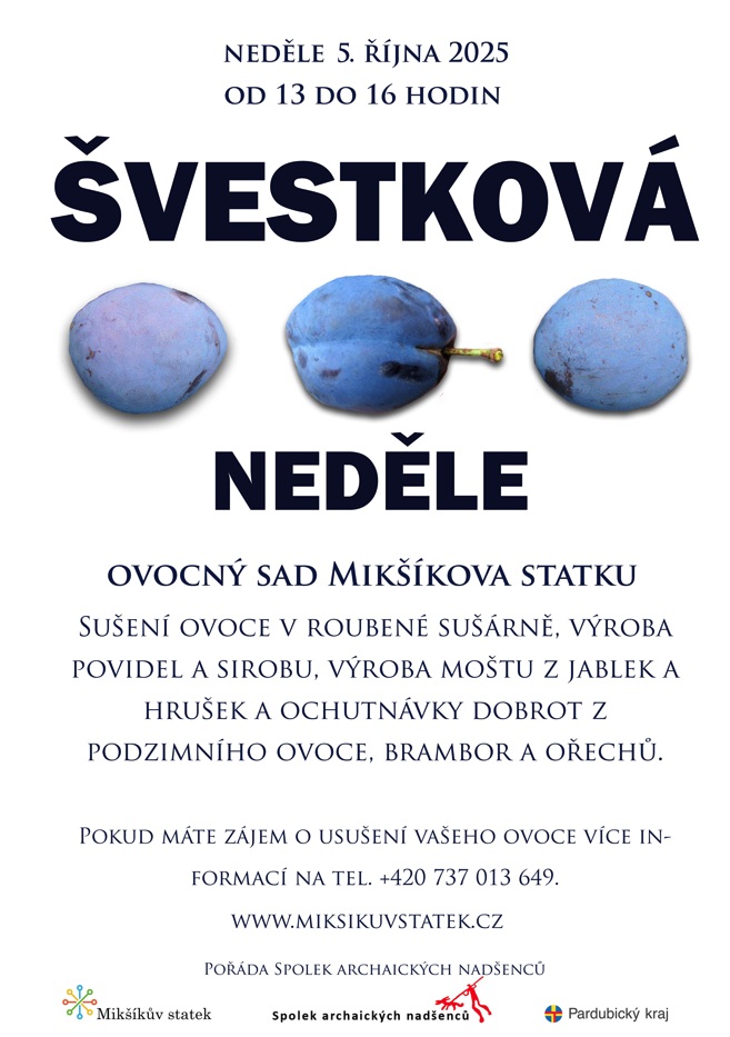 Mikšíkův statek v Trstěnici vás zve na ŠVESTKOVOU NEDĚLI dne 5. října od 13 do 16 hodin.