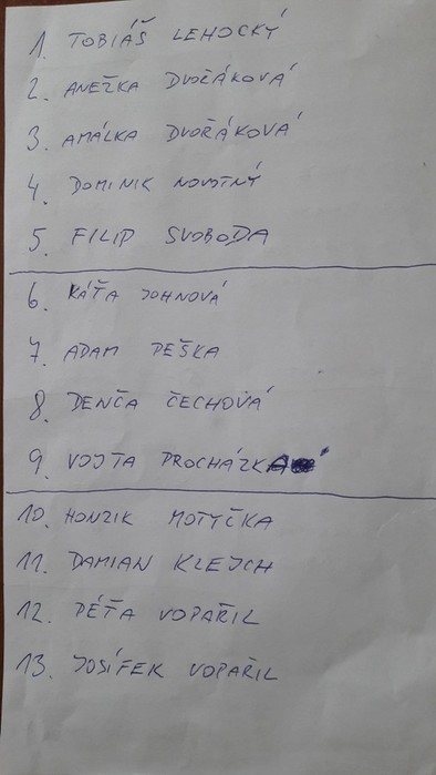 I přes krásné jarní počasí si do interiérového postředí neváhalo přijít zahrát a zkusit štěstí ve hře celkem 33 hráčů! 13-ti z nich se podařilo herně dostat do finále, kde se následně umístili v poradí: Na 1. místě: Tobiáš Lehocký z Lubné, na 2. místě Anežka Dvořáková, na 3. místě Amálka Dvořáková, na 4. Dominik Novotný, na 5. Filip Svoboda, na 6. Katka Johnová, na 7. Adam Peška, na 8. Denisa Čechová, na 9. Vojta Procházka, na 10. Jan Motyčka, na 11. Damián Klejch, na 12. Petr Vopařil a na 13. Josef Vopařil.