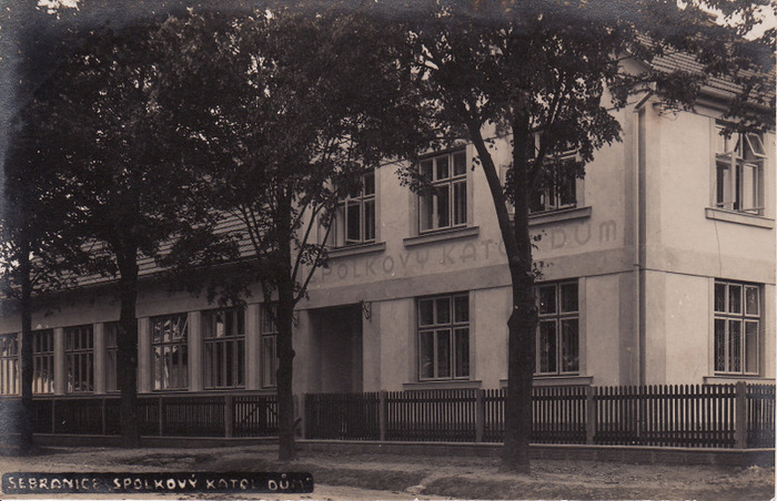 Pohled na spolkový katolický dům. Pohlednice byla zaslána v r. 1935, rok jejího vzniku však není znám.