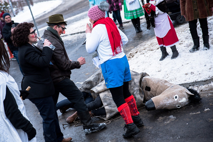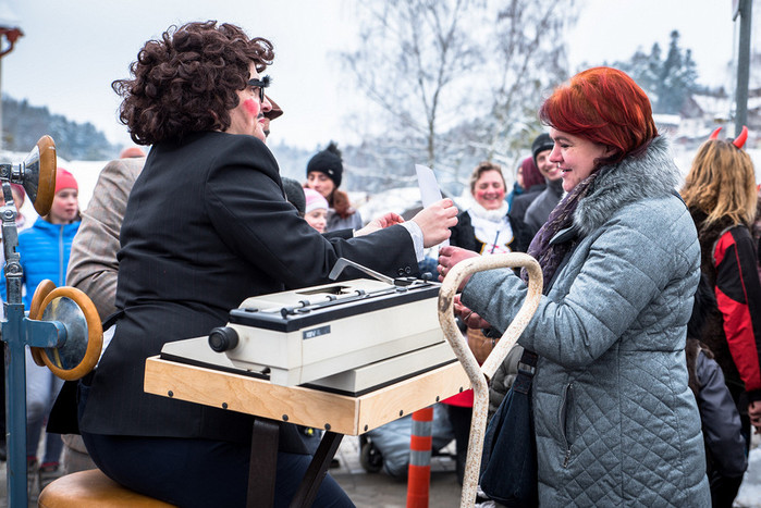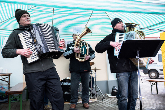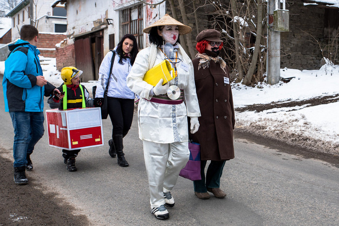 Škoda jen, že se masek sešlo o něco méně než vloni, ale na zábavě to znát nebylo. Všichni jsme si to jak se patří užili a já moc děkuji všem, kteří se do maškar zapojili, ale i těm, kteří se na masopust přišli podívat a pobavit se. Velký dík a uznání patří i muzikantům, kteří po celé odpoledne bez přestávky hráli, což byl v tom počasí úctyhodný výkon. Bez nich by to ale nebylo ono.