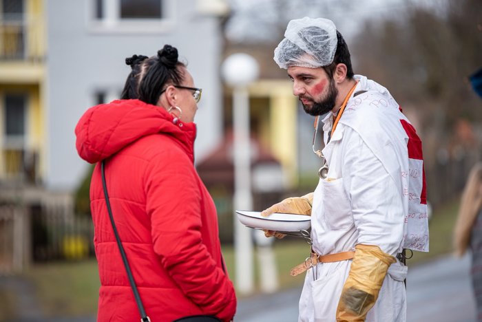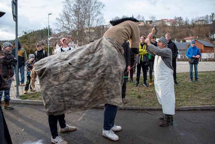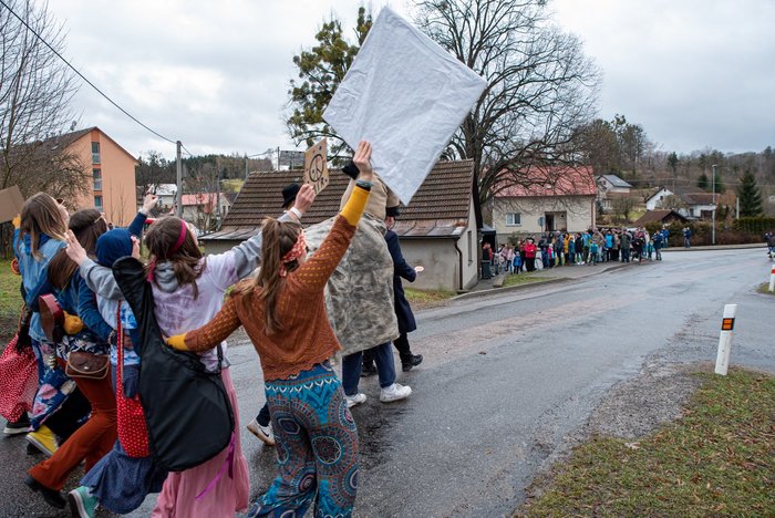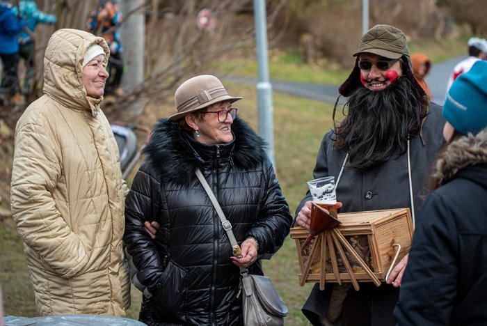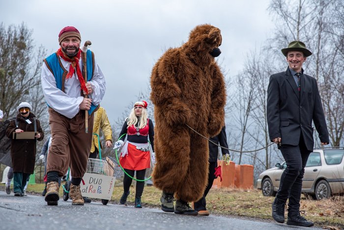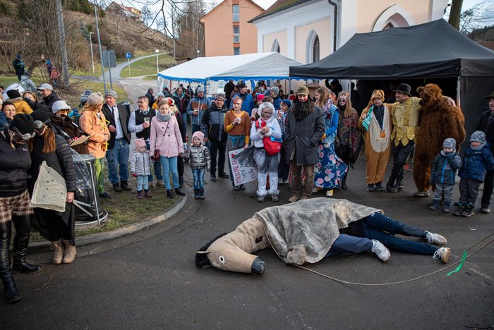 Děkujeme masopustnímu průvodu, který svými příběhy obohatil přítomné. Děkujeme všem, kteří se postarali o dobré jídlo a pití a za zázemí, které nám bylo poskytnuto k přípravám. Děkujeme za to, že všechno se snědlo i vypilo, že bylo veselo a lidé se radovali. Děkujeme za počasí, které k nám bylo příznivé a vyšlo i slunce. Děkujeme za všechny lidi, kteří vytvořili přístřešek pro strávníky a kapelu. Děkujeme muzikantům za vedení při tanci. Děkujeme nám všem, že jsme to dali a že jsme společně pobyli.