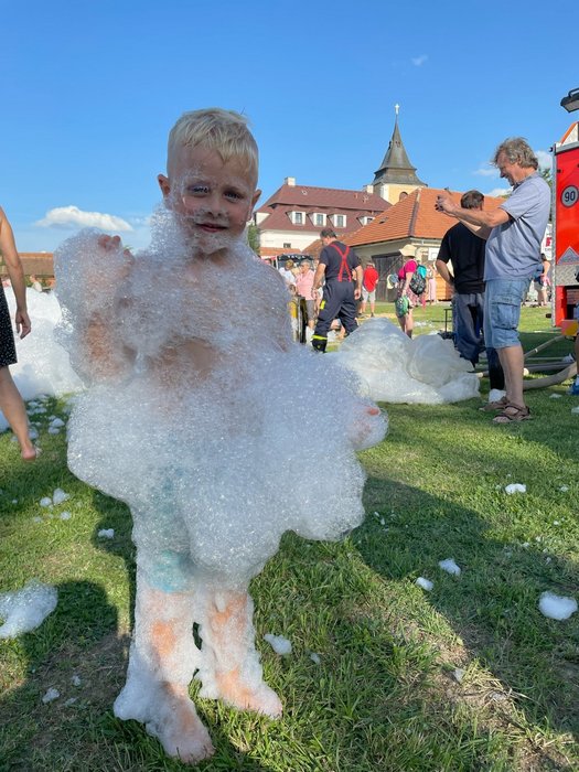 Od 15 hodin byla akce zaměřená spíše pro děti (ale i rodiče se zapojili). Mládež výše zmíněných organizátorů připravila plnění úkolů na několika stanovištích s následnou odměnou. Při splňování úkolů dětem i dospělým přálo slunečné počasí. Takže děti pak s nadšením přivítaly další programovou akci, a to pěnovou schow od SDH Čistá a Litomyšl. Sbory předvedly i svá zásahová auta a jejich vybavení. Příznivci dřeva mohli zhlédnout práci řezbářů. Jejich krásné dílo -Hastrman- se ve večerních hodinách dražilo ve prospěch dobročinné sbírky pro zhotovení nových zvonů „Martin“ v Bulharské Staré Zagoře. Vše na počest a vzpomínku letos náhle zesnulého selesiána Martina Jílka, který tam působil a rozdával svým srdcem a úsměvem všem radost.