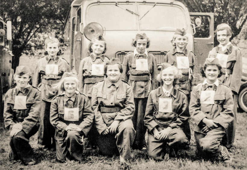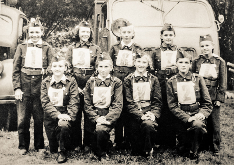 Družstvo dorostenek ze Sebranic na soutěži v Borové asi v roce 1963.