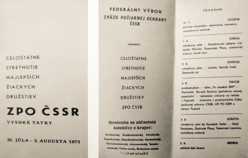 Celostátní setkání nejlepších krajských vítězů hry „Plamen 72“ – týdenní pobyt ve Vysokých Tatrách ve dnech 31. 7. – 5. 8. 1973