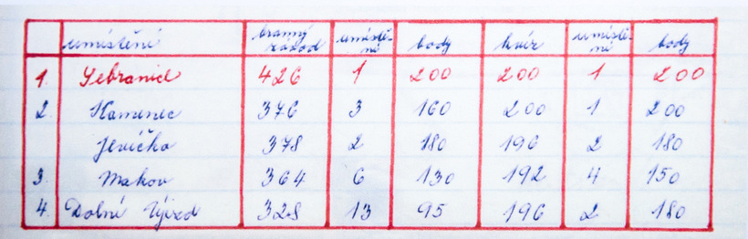 Družstvo žákyň ze Sebranic v roce 1959 vyhrálo v okresním kole.