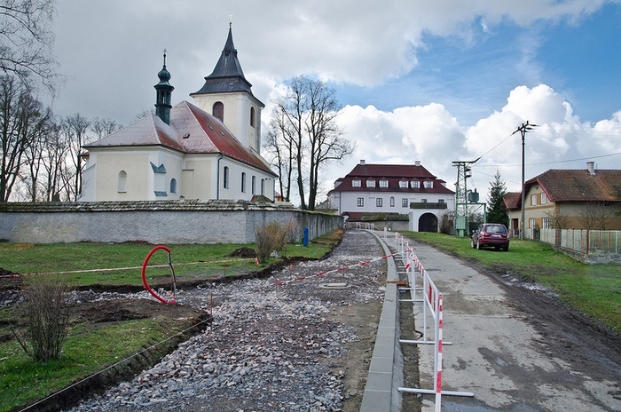 Stavebními úpravami se vybudoval nový chodník ze zámkové dlažby ke zdravotnímu středisku. Vybudovala se nová parkovací místa pro osobní automobily podél zdi u kostela a také se zrealizovala nová asfaltová komunikace od zdravotního střediska k Faře.