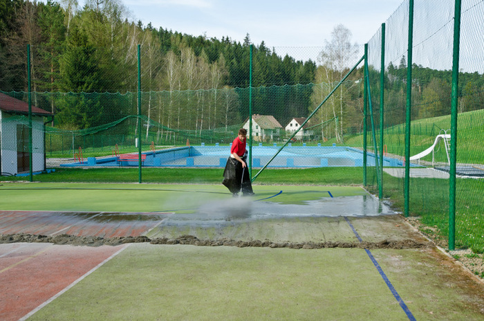 Vzhledem k tomu, že tenisový kurt v areálu koupaliště byl již delší dobu v nepříznivém stavu a pravidelná odborná údržba se na kurtu neprováděla prakticky od jeho zřízení, vedení obce se rozhodlo, že učiní kroky k tomu, aby byl kurt opět v perfektní kondici a mohl nabídnout příznivcům tenisu a nohejbalu kvalitní a čistý povrch. V pátek 26. dubna 2013 se započalo s úpravami tenisového kurtu. Celý kurt projde kompletní očistou, která zahrnuje odstranění stávajícího písku zapraveného do povrchu kurtu, následné umytí povrchu a opětovné zapravení nového písku do kurtu. Během několika následujících dnů bude kurt otevřen veřejnosti.