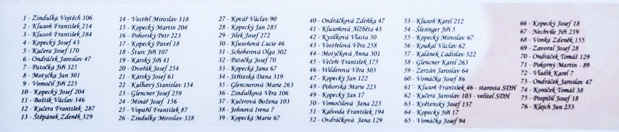 Poděkování patří Vojtěchu Zindulkovi a Josefu Vomáčkovi za poskytnuté písemnosti a fotografie, některé fotografie použity z kroniky mladých požárníků.