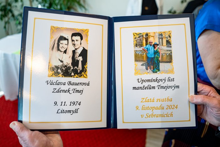 Dne 9. listopadu 2024 oslavili 50 let společného života manželé Václava a Zdenek Tmejovi. Do dalších let Vám přejeme mnoho zdraví, lásky a vzájemné pohody.