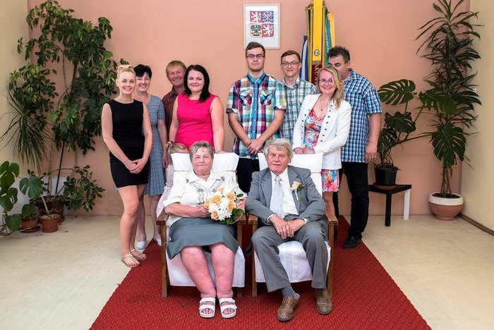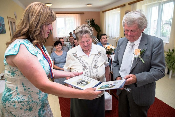 Toto významné výročí oslavili manželé Wilderovi v zasedací síni obecního úřadu v Sebranicích s rodinou a zástupci obce, starostkou Lenkou Karalovou a Václavou Tmejovou.